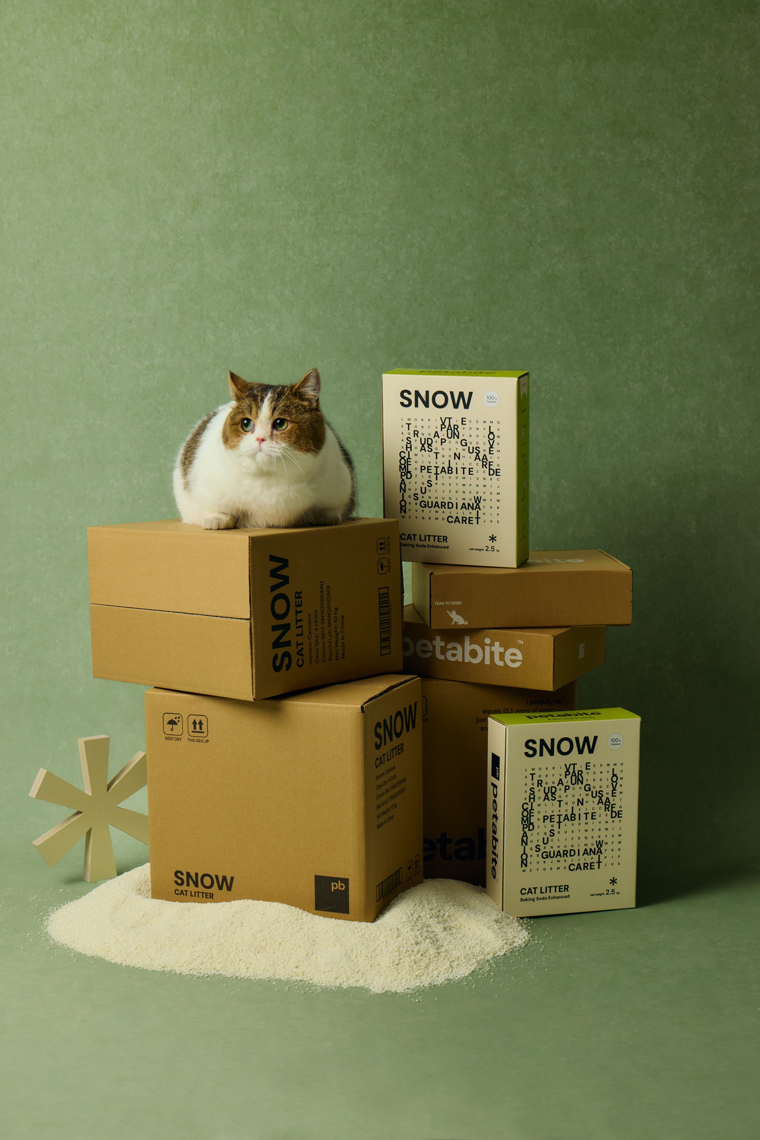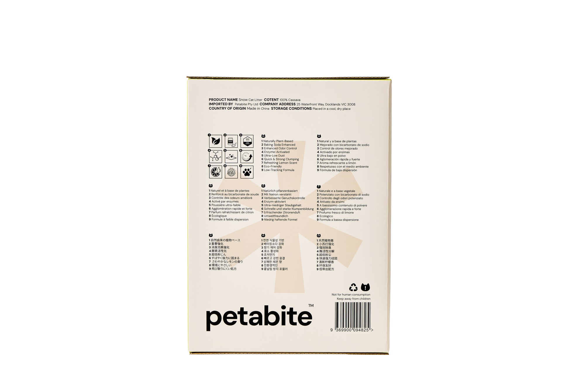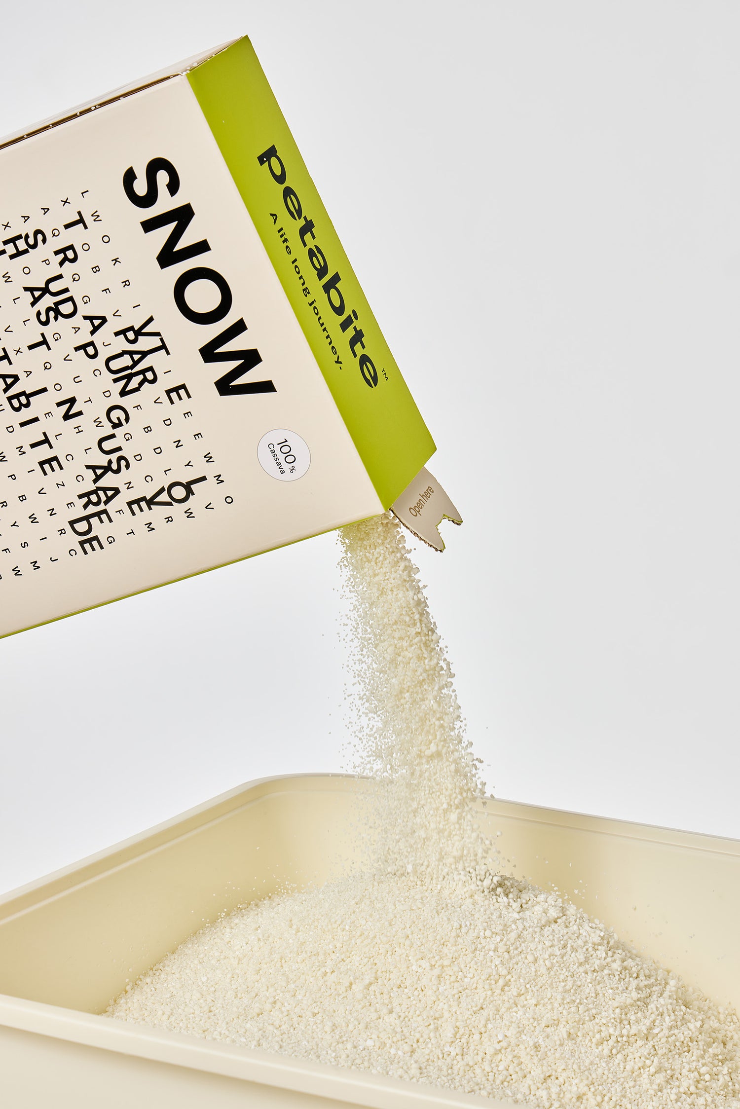 Snow is our pure cassava formula — finished with baking soda for quiet odour control, low dust on the pour, and clean, everyday clumping.